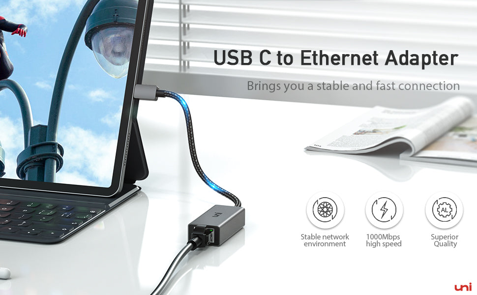 uni USB-C naar Ethernet-adapter voor Nintendo Switch, laptop en computer, werkt met ChromeOS, Windows (32/64 bit) 8/7/Vista /XP/10, macOS X 10.5 of hoger, Linux.
